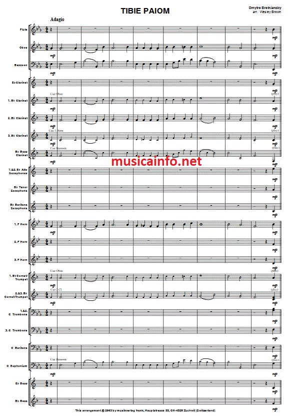 Aanvullende informatie/inhoud De compositie "Tibie Paiom" van Dimitri Bortniansky is een uitstekend voorbeeld van orthodoxe kerkmuziek die door het arrangement van Wesley Brown een nieuwe dimensie heeft gekregen. Browns arrangement voor harmonieorkest respecteert de spirituele diepgang en muzikale schoonheid van het origineel en opent tegelijkertijd nieuwe mogelijkheden voor uitvoeringen buiten de traditionele kerkelijke setting. Deze bewerking laat zien hoe klassieke werken door slimme arrangementen opnieuw kunnen worden geïnterpreteerd en toegankelijk kunnen worden gemaakt voor een breder publiek.