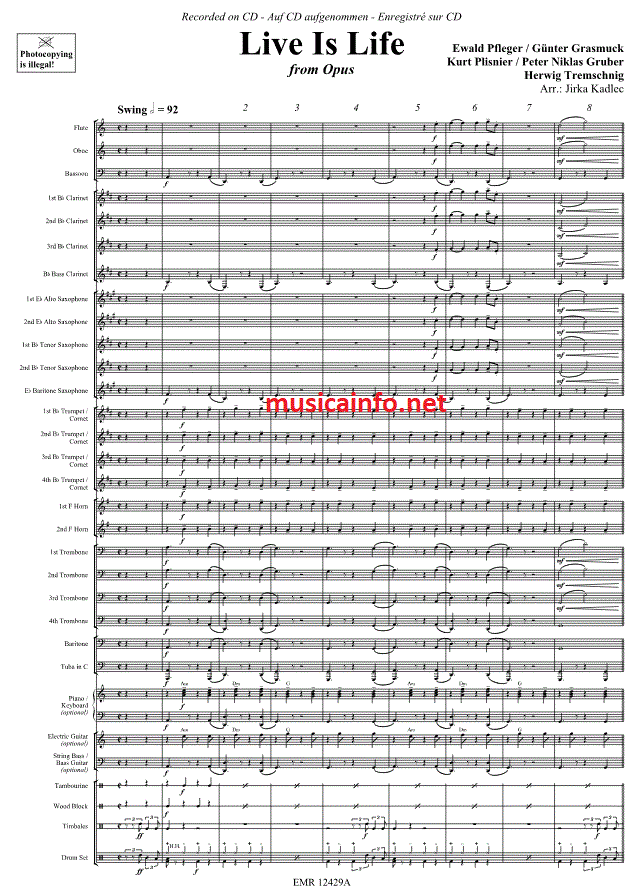 Live Is Life - klik hier Live Is Life (harmonieorkest; oder; fanfare), partituur en delen 110,68