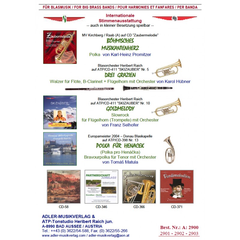 Polka für Henacek (Polka pro Henacka) - klik hier Polka für Henacek (Polka pro Henacka) (harmonieorkest; tenorhoorn), Samenvatting van de partituur en stemverzameling
