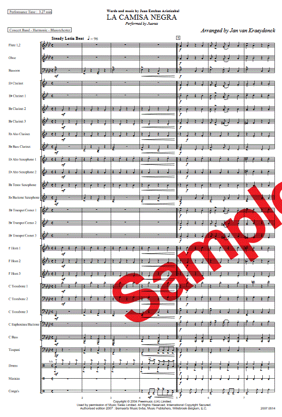 La Camisa Negra - klik hier La Camisa Negra (harmonieorkest), partituur