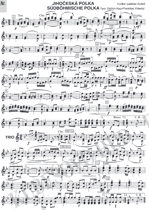 Südböhmische Polka (Jihoceská Polka) - klik hier Südböhmische Polka (Jihoceská Polka) (harmonieorkest), Samenvatting van de partituur en stemverzameling