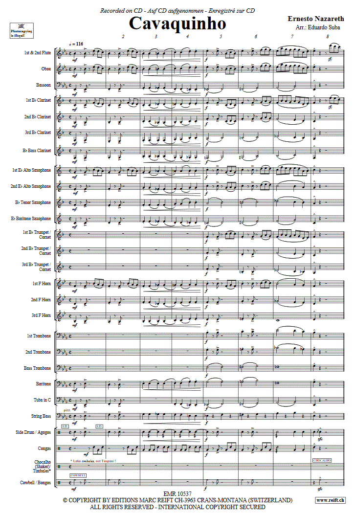 Cavaquinho - klik hier Cavaquinho (harmonieorkest; oder; fanfare), partituur