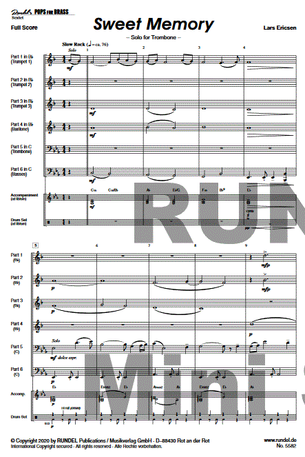 Sweet Memory - klik hier Sweet Memory (Solo-Trb; 3 trompet Bb; tenorhoorn; oder; Hoorn; tuba), partituur en delen