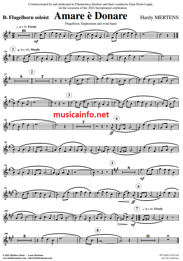 Aanvullende informatie/inhoud Amare è Donare (Liefhebben is Geven) is een liefdeslied. Twee eenzame zielen (bugel en euphonium) vinden elkaar op hun reis door het leven. Behoefte hebbend aan passie en inspiratie gaan ze op weg naar een happy end met een vleugje contemplatie. In opdracht van Filarmonica Imolese ter gelegenheid van het tweehonderdjarig bestaan in 2022.