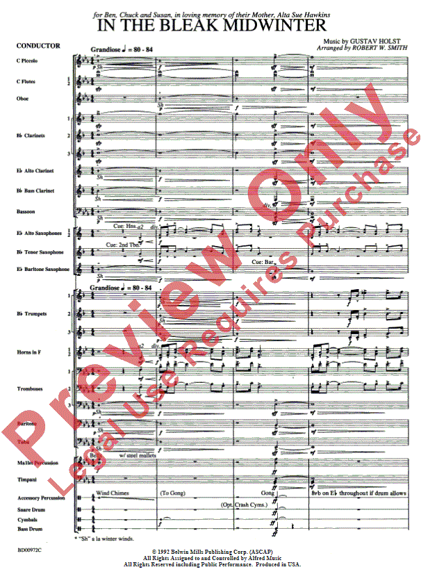 In the Bleak Midwinter - klik hier In the Bleak Midwinter (harmonieorkest), partituur en delen