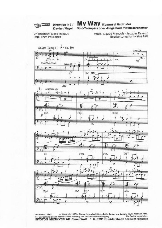 My Way (Comme d'Habitude) - klik hier My Way (Comme d'Habitude), particell